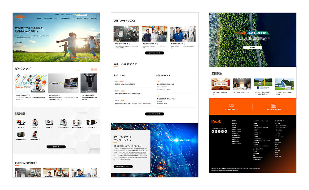 プロジェクトでは、クライアントの皆さまとプロジェクト内でのコミュニケーションを重視し、ヤマザキマザック株式会社さまの製品がもつ持つ機能性と美しさを、Webサイトで表現することができました。