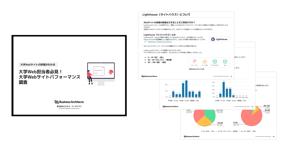 Lighthouse(Google Chrome拡張機能)を使用した関東・関西圏の22の主要私立大学のWebサイトの調査結果をまとめました。